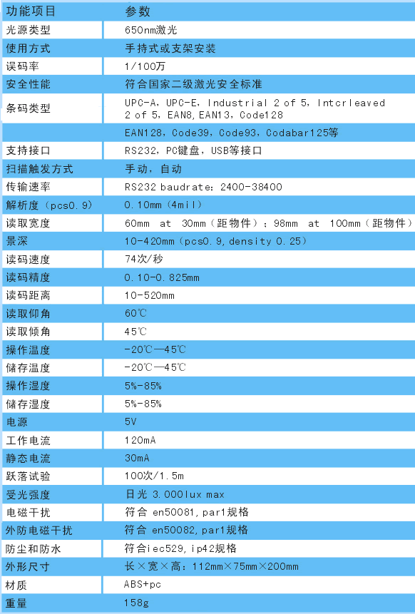 ■ 符合人体工程学设计,独特握持手柄,极为舒适的操作手感,长期使用不易疲劳,准确识读各种条码